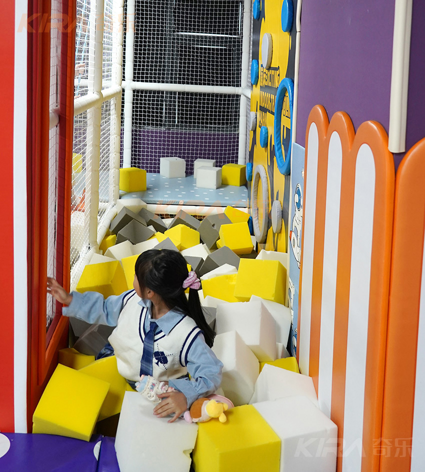 結(jié)構(gòu)穩(wěn)固,邊角全部采用軟包防護(hù),地面全部使用高密度緩沖地墊,全方位保護(hù)孩子免于跌落傷害,從源頭上杜絕安全隱患。