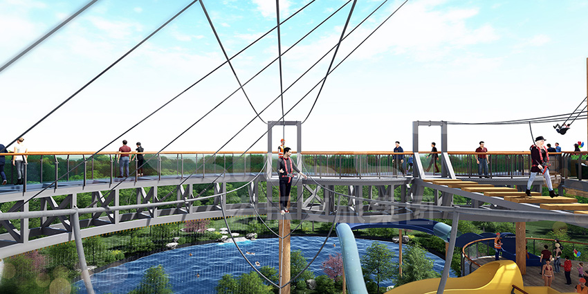 本項(xiàng)目適用于各種親子主題類(lèi)的樂(lè)園,巧妙運(yùn)用“熊貓”IP造型設(shè)計(jì),集拓展、探險(xiǎn)、滑道、飛索、蹦極、不銹鋼滑梯、攀巖、爬網(wǎng)等46種不同運(yùn)動(dòng)體驗(yàn)的文化主題項(xiàng)目,結(jié)合“大灰熊”IP形象,融入相關(guān)設(shè)計(jì)元素,打造差異化的網(wǎng)紅IP主題性運(yùn)動(dòng)拓展?fàn)I地綜合體。