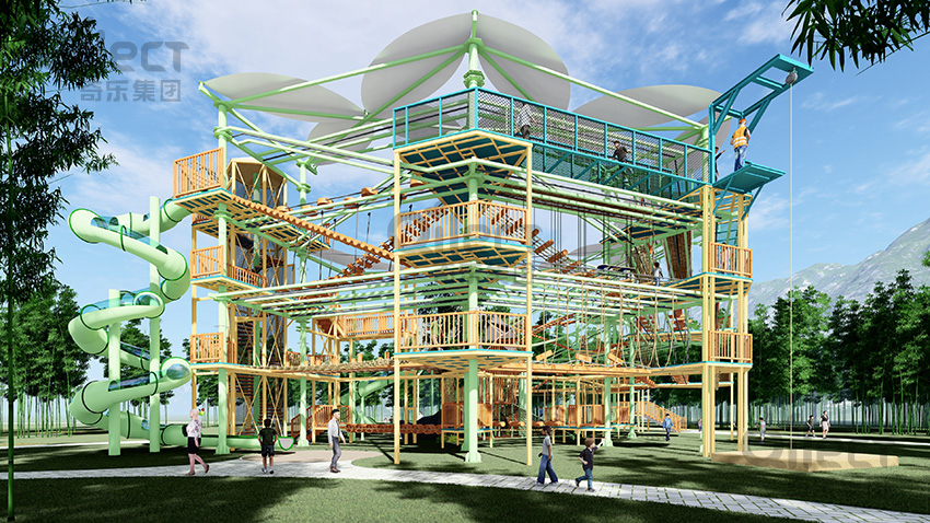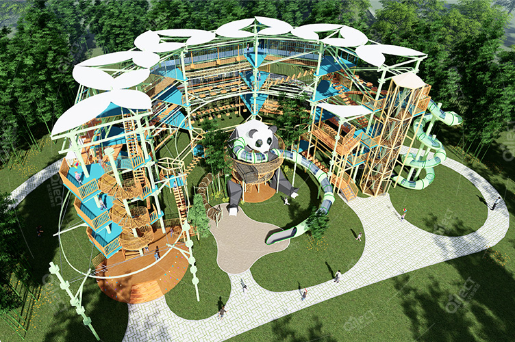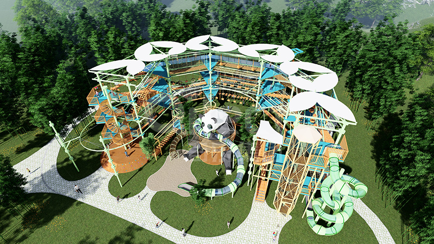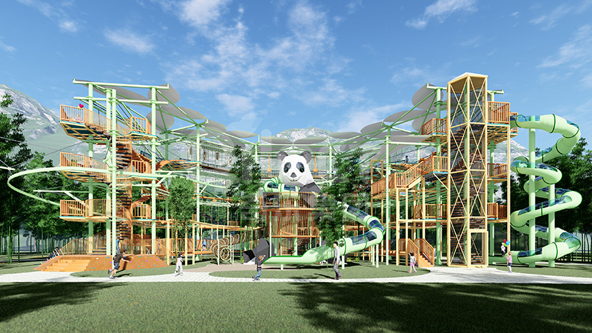 本項(xiàng)目適用于各種親子主題類的樂園,巧妙運(yùn)用“熊貓”IP造型設(shè)計(jì),集拓展、探險(xiǎn)、滑道、飛索、蹦極、不銹鋼滑梯、攀巖、爬網(wǎng)等46種不同運(yùn)動(dòng)體驗(yàn)的文化主題項(xiàng)目,結(jié)合“大灰熊”IP形象,融入相關(guān)設(shè)計(jì)元素,打造差異化的網(wǎng)紅IP主題性運(yùn)動(dòng)拓展?fàn)I地綜合體。
